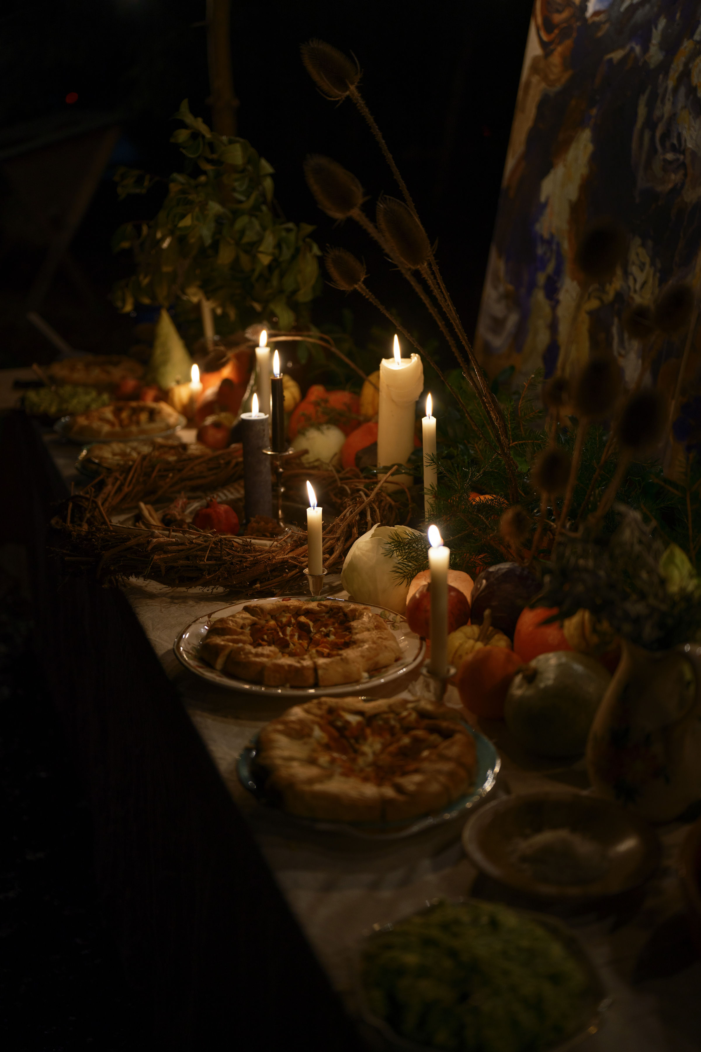 This work brought together two worlds that had been growing closer in my practice over the past year: my artistic work and my long-standing involvement with Domein De Schans, where I had been cooking for retreats for the past three years. By bringing my art practice into this context, the ritual dinner became a site where nourishment, ceremony, and artistic expression merged.